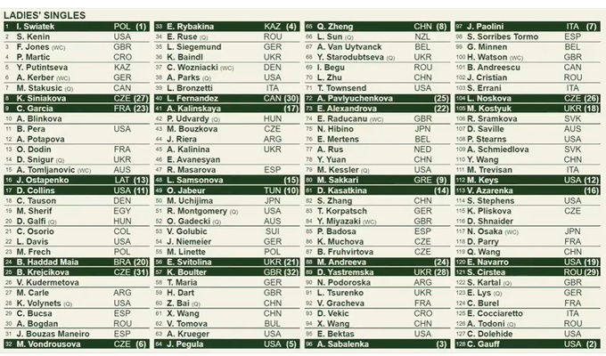 В основной сетке Уимблдона-2024 по рейтингу сыграют: Марта Костюк (WTA 18), Элина Свитолина (WTA 21), Даяна Ястремская (WTA 28), Ангелина Калинина (WTA 44), Леся Цуренко (WTA 57). Катерина Байндл воспользовалась «замороженным» рейтингом (WTA 175). Из квалификации отобрались украинки Дарья Снигур (WTA 131) и Юлия Стародубцева (WTA 153).