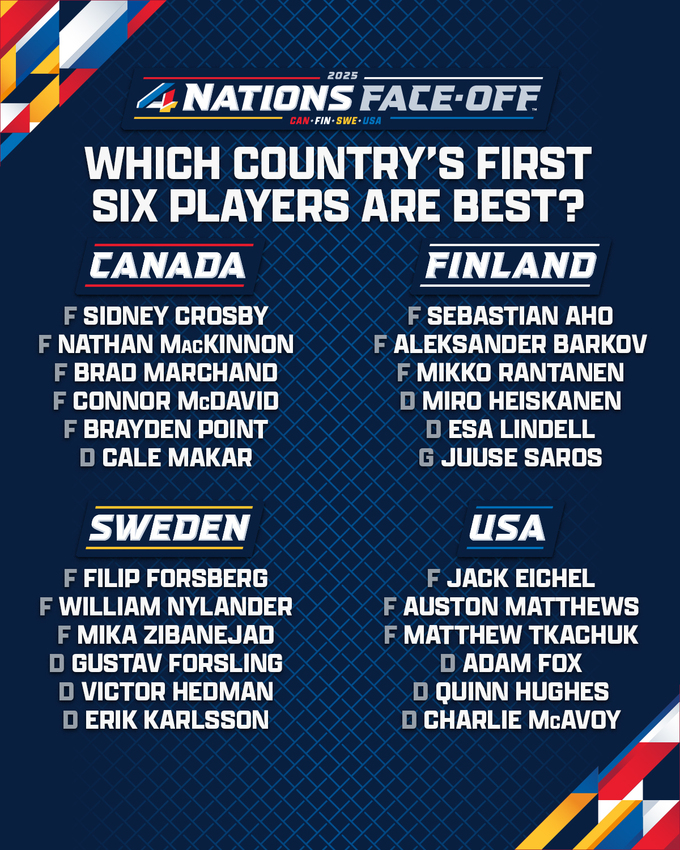 Турнир четырех наций пройдет в феврале 2025 года, а сегодня четыре сборные назвали по 6 хоккеистов, которые будут в заявках команд.