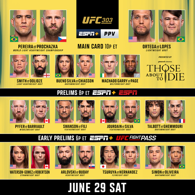 В ночь с 29 на 30 июня в Парадайзе (штат Невада) проходит турнир по смешанным единоборствам UFC 303.