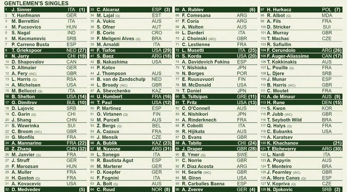 Также не часто бывает, что на таких больших турнирах не будет борьбы за первую строчку мирового рейтинга, но это как раз такой случай. При любых раскладах Ига Свёнтек и Янник Синнер останутся лидерами рейтингов WTA и ATP соответственно.
