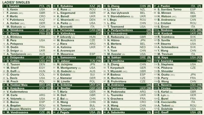 Первая ракетка мира Ига Свёнтек после победы на Ролан Гаррос приняла решение сосредоточиться исключительно на Уимблдоне, не играя турниров до этого. Вторая ракетка мира Коко Гофф выступила в столице Германии, где проиграла свой напарнице Пегуле. Арина Соболенко, Елена Рыбакина и Онс Жабер не смогли доиграть соревнования в Берлине.