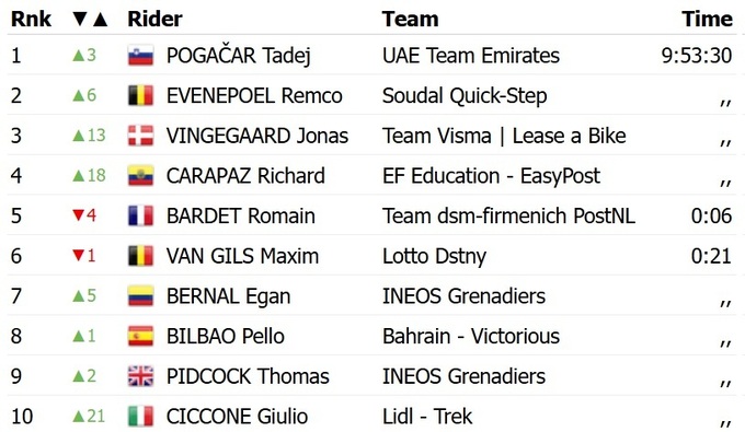 Словенец Тадей Погачар из «UAE Emirates» сегодня финишировал 14-м и перехватил желтую майку лидера у вчерашнего победителя, Ромена Барде.