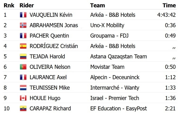 Французский велогонщик команды «Arkea – B&B Hotels» Кевин Воклен стал победителем второго этапа Тур де Франс-2024. В борьбе из отрыва он опередил норвежца Йонаса Абрахамсена из «Uno-X» и соотечественника Кентена Паше из «Groupama FDJ».