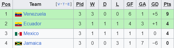 В плей-офф соревнований пробились Венесуэла и Эквадор, Мексика и Ямайка вылетели