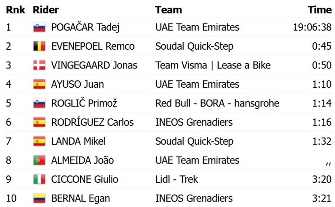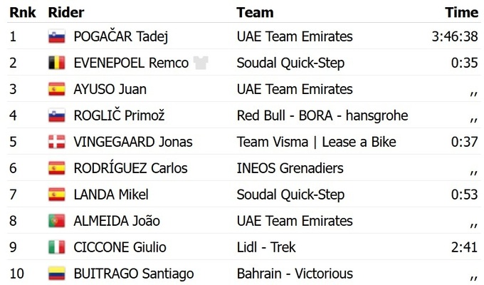 Эта победа позволила Погачару вернуть себе желтую майку лидера общего зачета.