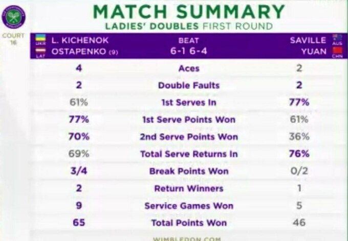 Украинско-латвийский тандем продлил винстрик до 5 матчей. До старта Уимблдонского турнира Киченок и Остапенко выиграли титул на кортах Истбурна.
