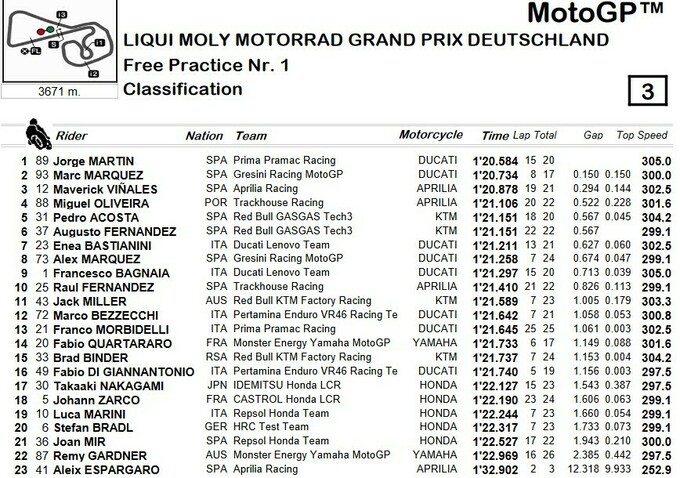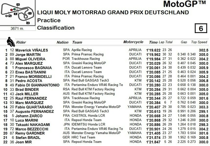 Практики ГП Германии MotoGP. Мартин и Виньялес в топ-3, Эспаргаро снялся