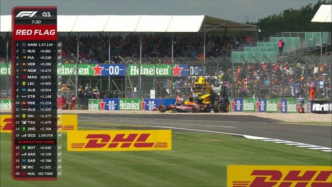 В первой части квалификации Формулы-1 в рамках Гран-при Великобритании пилот Ред Булла Серхио Перес вызвал красные флаги. Болид гонщика вылетел в гравий и застрял.