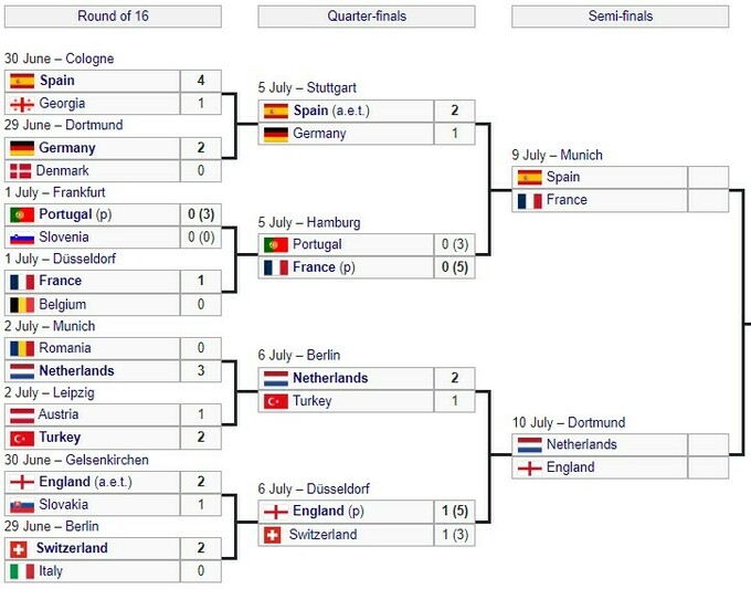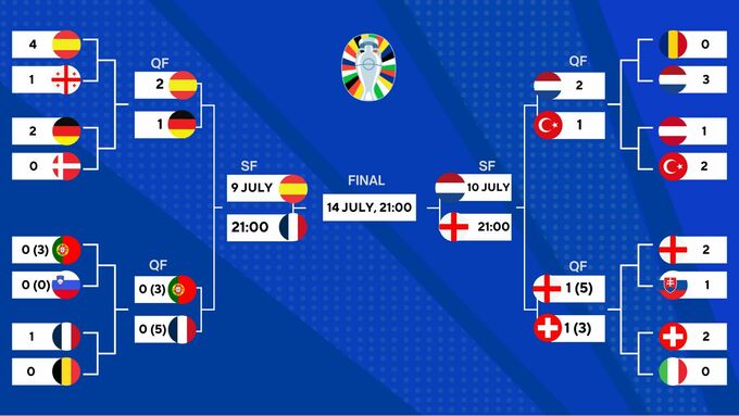 Вечером 6 июля состоялись два заключительных матча 1/4 финала Евро-2024 и определены все полуфиналисты турнира.