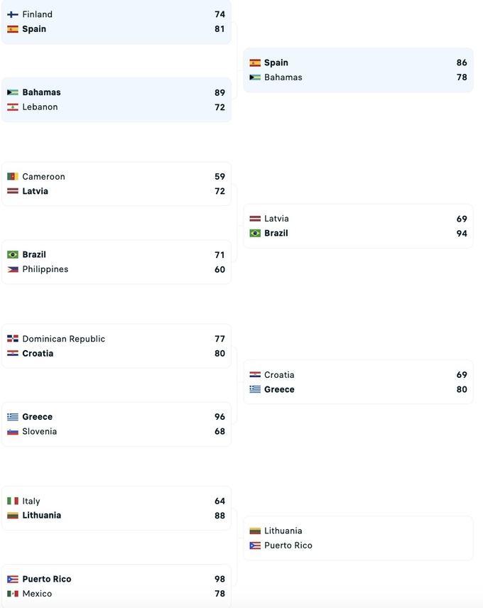 Сборная Бразилии сенсационно уничтожила Латвию, Греция благодаря 23 очкам звезды НБА Янниса Адетокумбо одолела Хорватию, а Испания была сильнее Багамских Островов.