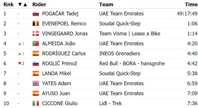 Главным неудачником дня стал словенец Примож Роглич из Red Bull Bora. Он попал в завал за 12 км до финиша и в итоге проиграл 2 минуты и 27 секунд.