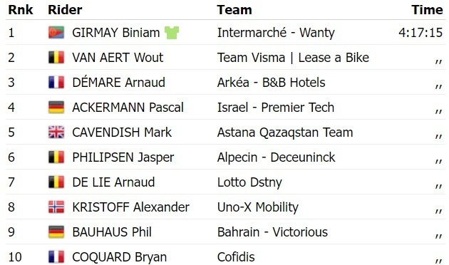 В финишном спринте из пелотона Гирмай опередил бельгийца Воута Ван Арта из Visma Lease a Bike и француза Арно Демара из Arkea – B&B Hotels.
