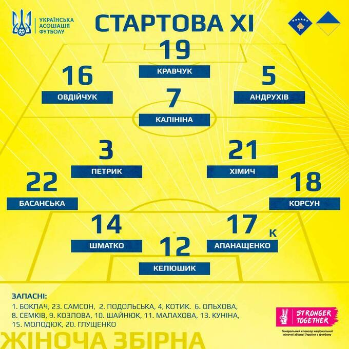 В стартовую 11-ку вошли: Келюшик – Корсун, Апанащенко, Шматко, Басанская – Химич, Петрик – Андрухив, Калинина, Овдийчук – Кравчук.
