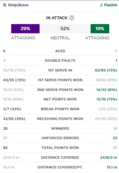 Барбора Крейчикова (Чехия) – Жасмин Паолини (Италия) – 6:2, 2:6, 6:4