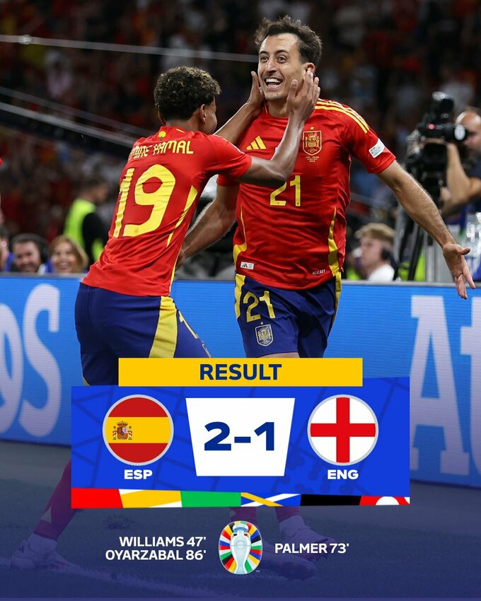 Сборная Испании выиграла финал со счетом 2:1 и завоевала главный трофей Евро-2024