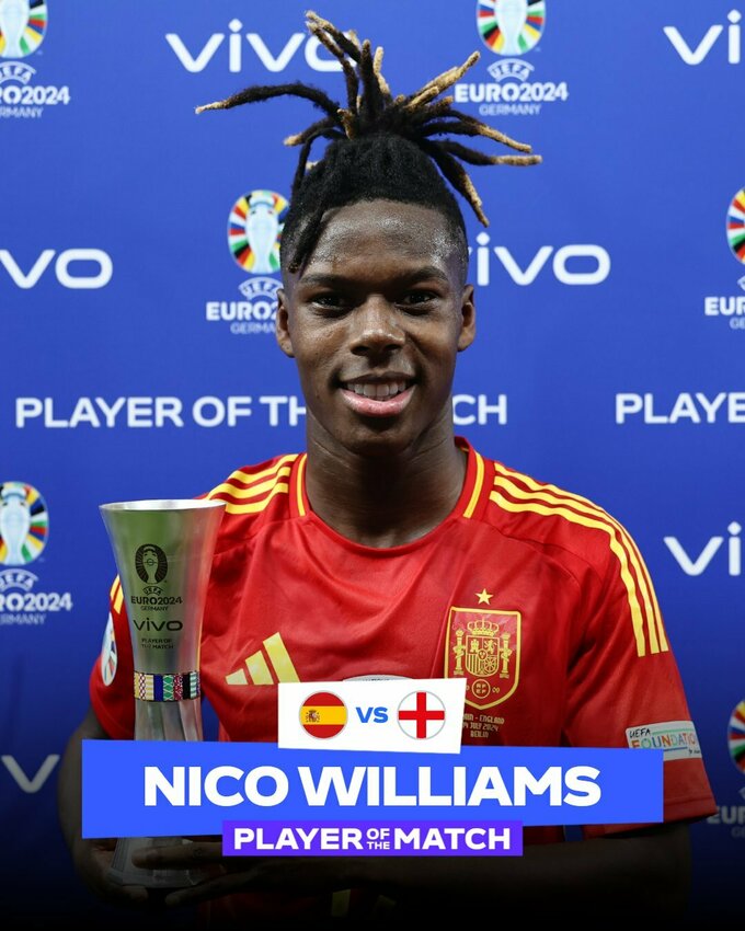- Нико Уильямс (Испания) – лучший игрок финального матча Евро-2024