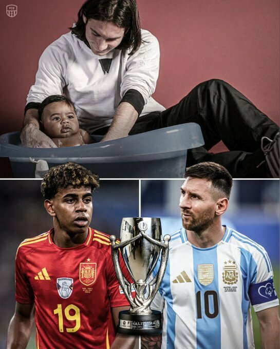 Ламин Ямал, ставший главной звездной испанцев на ЧЕ-2024, может встретиться с легендарным Лионелем Месси. Их первая встреча состоялась в 2007 году. Тогда семья новорожденного Ямала выиграла конкурс на фотосессию с игроками «Барселоны», за которую тогда выступал Лео. Месси позировал с маленьким Ламином, купая его в ванне.