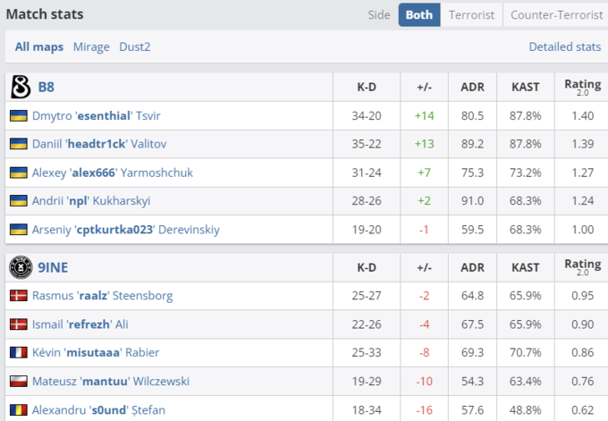 Первой картой противостояния стал пик «B8» – Mirage. Что интересно, именно на своём выборе у «бэйтов» возникли проблемы. Начало у них явно не задалось и в моменте счёт доходил до 1:7. Однако перевернуть игру всё же удалось и уже в первой половине счёт дошёл до близких 5:7. Во второй половине «B8» без сильного напряга довели счёт до победного и обыграли противника с конечным результатом 13:11.