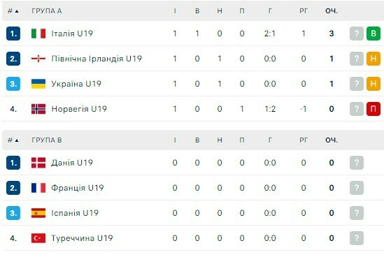 Турнирное положение после 1-го тура: Италия (3 очка), Северная Ирландия, Украина (по 1), Норвегия (0).