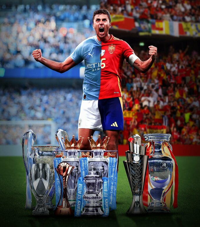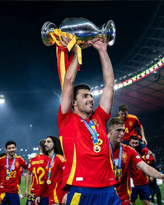 Кроме того, выступая за Красную Фурию, Родри выиграл Евро-2024 и Лигу наций 2022/23.