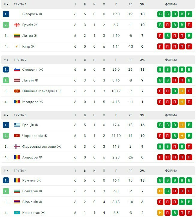 Украина – на 2-м месте. Итоговые таблицы квалификации женского Евро-2025