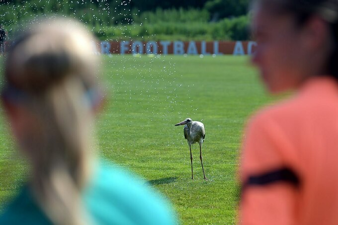 Странный гость неожиданно посетил тренировку донецкого «Шахтера». На занятие женской команды горняков прилетел аист.