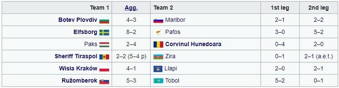 - Шериф Тирасполь (Молдова) – Эльфсборг (Швеция)