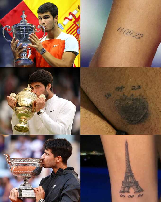 Отметим, что у Карлоса есть татуировки, посвященные первым победам на других мейджорах: в 2022-м он выиграл US Open, в 2023-м – Уимблдон. Пока что из турниров Grand Slam он не выиграл только Australian Open (лучшее достижение – 1/4 финала).