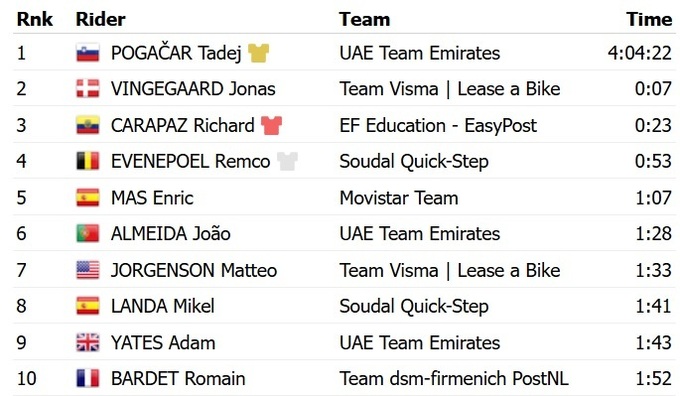 Тур де Франс. Пятая победа Погачара, Вингегор отдалился от Эвенпула