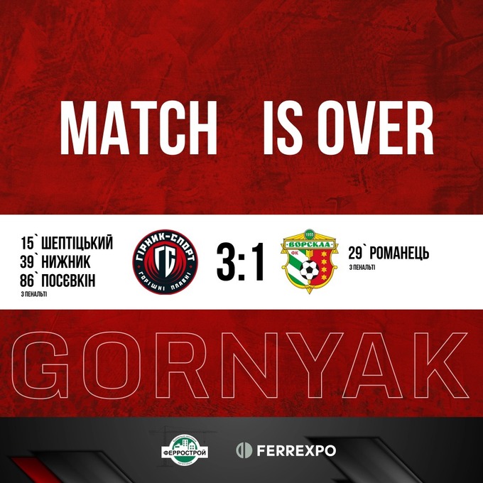 Голы: Шептицкий, 15, Нижник, 39, Посевкин, 86, пен – Романец, 29, пен