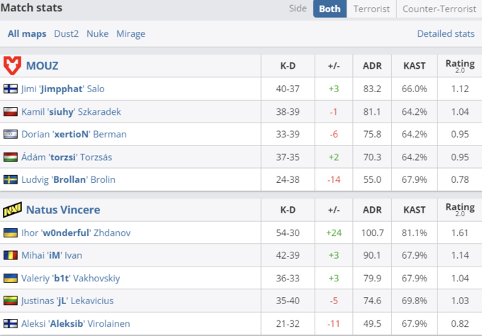 Далее встреча перешла на выбор «мышей» – Nuke. Ожидания от «рожденных побеждать» после столь бесхарактерной игры на первой карте были минимальными. Однако уже с первого пистолетного раунда NaVi показали, что игра еще не закончена. Первая половина завершилась паритетом 6:6, а во второй украинская организация уничтожила оппонента. Итоговый счет карты 8:13.