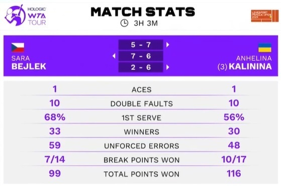 Ангелина Калинина (Украина) – Сара Бейлек (Чехия) – 7:5, 6:7(7), 6:2