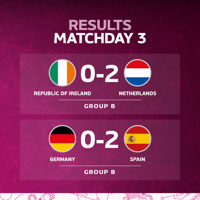 Сенсационно выбыла из турнира команда Германии, уступив Испании со счетом 0:2.