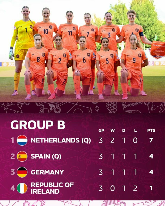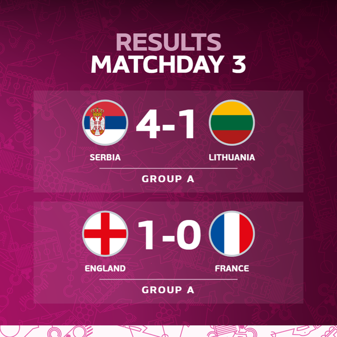 В 1/2 финала 24 июля встретятся: Англия – Испания, Нидерланды – Франция. Финал запланирован на 27 июля в Каунасе.