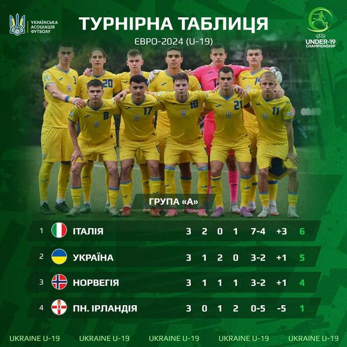 Украинцы одержали волевую победу благодаря голам Геннадия Синчука, Даниила Кревсуна и Матвея Пономаренко. Команда Дмитрия Михайленко заняла второе место в группе, позади Италии.