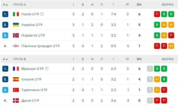 Соперник Украины в полуфинале будет определен позже – им станет победитель группы B – Франция (6 очков) или Испания (4). Матч между этими командами пройдет 22 июля, для победы в группе французов устраивает ничья, а испанцам нужна победа.
