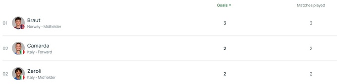 Скромная результативность команды не позволяет украинским футболистам быть среди лидеров в гонке бомбардиров Евро-2024 U-19. В ней лидирует норвежец Даниэль Браут из клуба «Саннес Ульф», в активе которого 3 гола. За ним идут два итальянца – Франческо Камарда и Кевин Дзероли (оба – из «Милана»). У них по два гола.