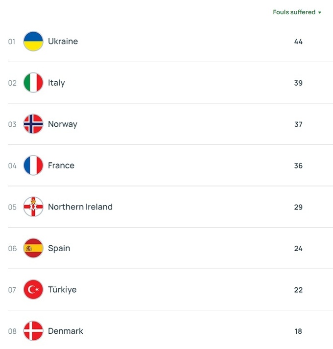 Юношеская сборная Украины U-19 на чемпионате Европы 2024 U-19, который проходит в Северной Ирландии, возглавляет рейтинг по количеству заработанных фолов.