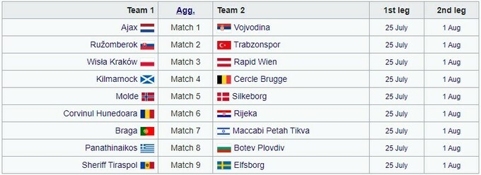 Кроме того, в этом раунде Q3 может принять участие киевское Динамо, если проиграет Партизану в Q2 Лиги чемпионов.