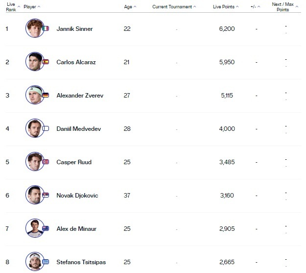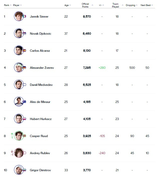 В первой десятке Каспер Рууд опередил Андрея Рублева.