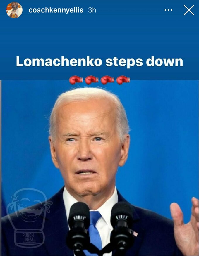 На этот раз Эллис опубликовал в сторис инстаграма фото президента США Джо Байдена с подписью: «Ломаченко уходит в отставку».