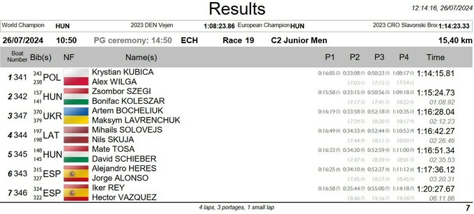 В соревнованиях юниоров на каноэ-двойках третьими стали Артем Бочелюк и Максим Лавренчук, которые более двух минут проиграли победителям, полякам Кристиану Кубице и Алексу Вильге. Вторыми стали Жомбор Сеги и Бонифац Колесар из Венгрии.