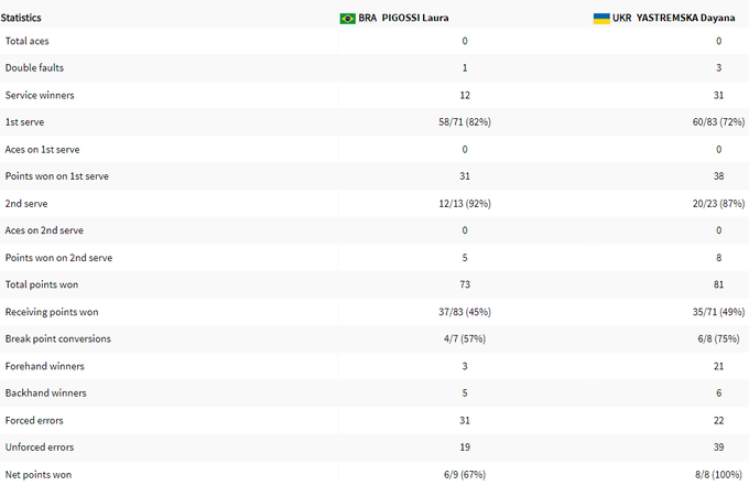 Лаура Пигосси (Бразилия) – Даяна Ястремская (Украина) – 6:3, 5:7, 0:6