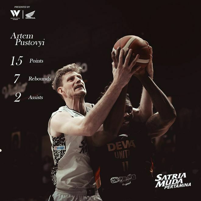 «Сатрия Муда» одолел «Дева Юнайтед» (92:85). Центровой отыграл 34 минуты, за которые набрал 15 очков (5/8 двухочковые, 1/1 трехочковые, 2/3 штрафные), собрал 7 подборов, отдал 2 передачи, поставил 1 блок-шот при 1 потере. Соперником в решающей серии будет клуб «Пелита Джая».