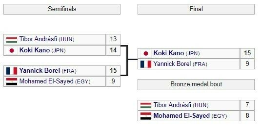 Японский шпажист Коки Кано стал олимпийским чемпионом в индивидуальных соревнованиях в Париже, одержав в финальном поединке победу над французом Янником Борелем (15:9).