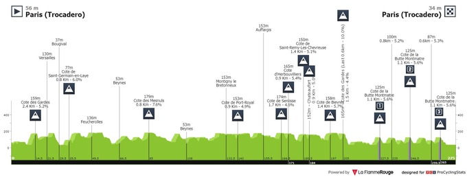 Развязка же больше напоминает другой Монумент – Тур Фландрии, но все же на минималках: на легендарной бельгийской однодневке развязка сложнее и селективнее. На последних 50 км дистанции гонщиков ждет тройное прохождение брусчатого подъема Кот де ля Бут Монматр: 1,1 км, средний градиент – 5,6%. Последнее из трех прохождений этого хеллингена – за 10 км до финиша.