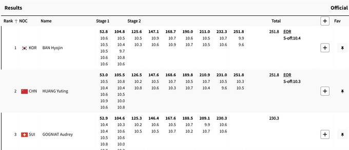 Золотую награду сумела завоевать 16-летняя спортсменка из Южной Кореи Бан Хьо Джин. Которая показала лучший результат, чем Хуан Ютинг из Китая и Одри Гонья из Швейцарии.