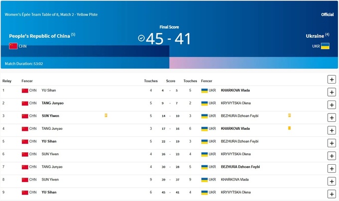Женская сборная Украины по фехтованию не поборется за медали командного турнира на шпагах на Олимпиаде 2024 года в Париже. В четвертьфинале наша команда потерпела поражение 41:45 от сборной Китая.