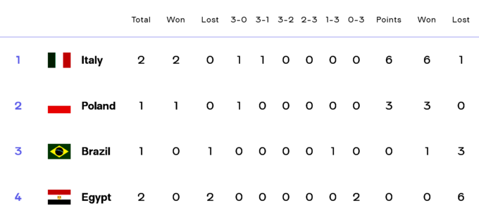 В группе В лидерство удерживает сборная Италии, легко победившая Египет 3:0. При любом раскладе она войдет в восьмерку четвертьфиналистов.