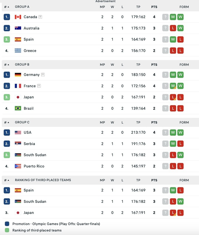 Олимпийские игры 2024. Баскетбол. Групповой этап, 31 июля.